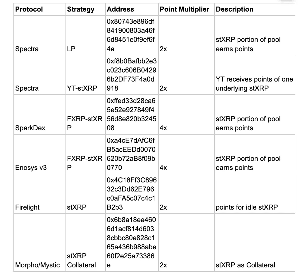 Everything else earns at 2x, including idle stXRP held directly through Firelight.