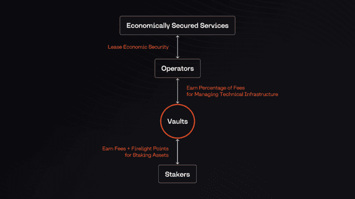 Phase 2 of Firelight is a marketplace: ESSes lease security, stakers supply assets for fees and points, and operators run the infrastructure—together enabling flexible, on-demand economic security.